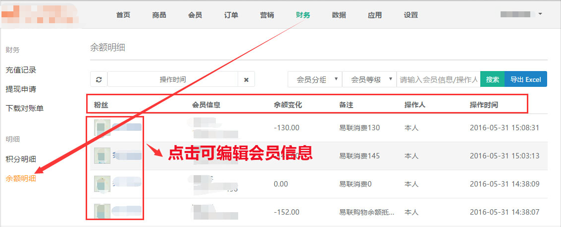 * 设置入口位置:财务——余额明细