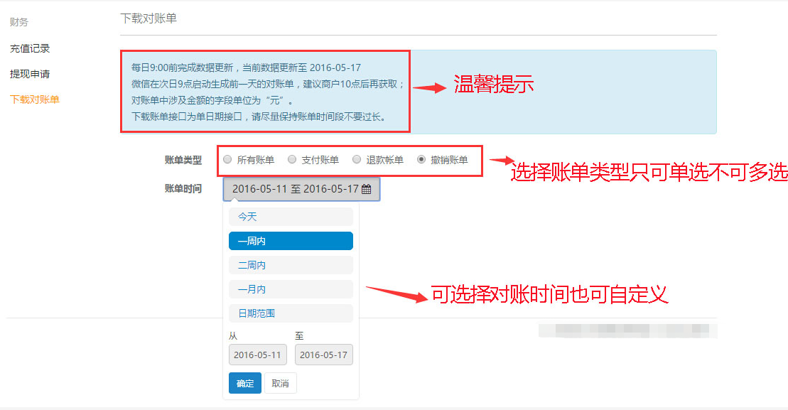 - 下载对账单