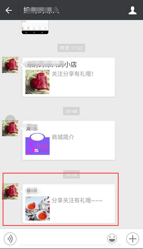 填写分享的标题和上传分享的图片后,分销商分享出去的商城店铺会显示此处添加的信息,前提是关闭【人人分销】——【基础设置】——【小店】——【我的小店功能】,参见下图: