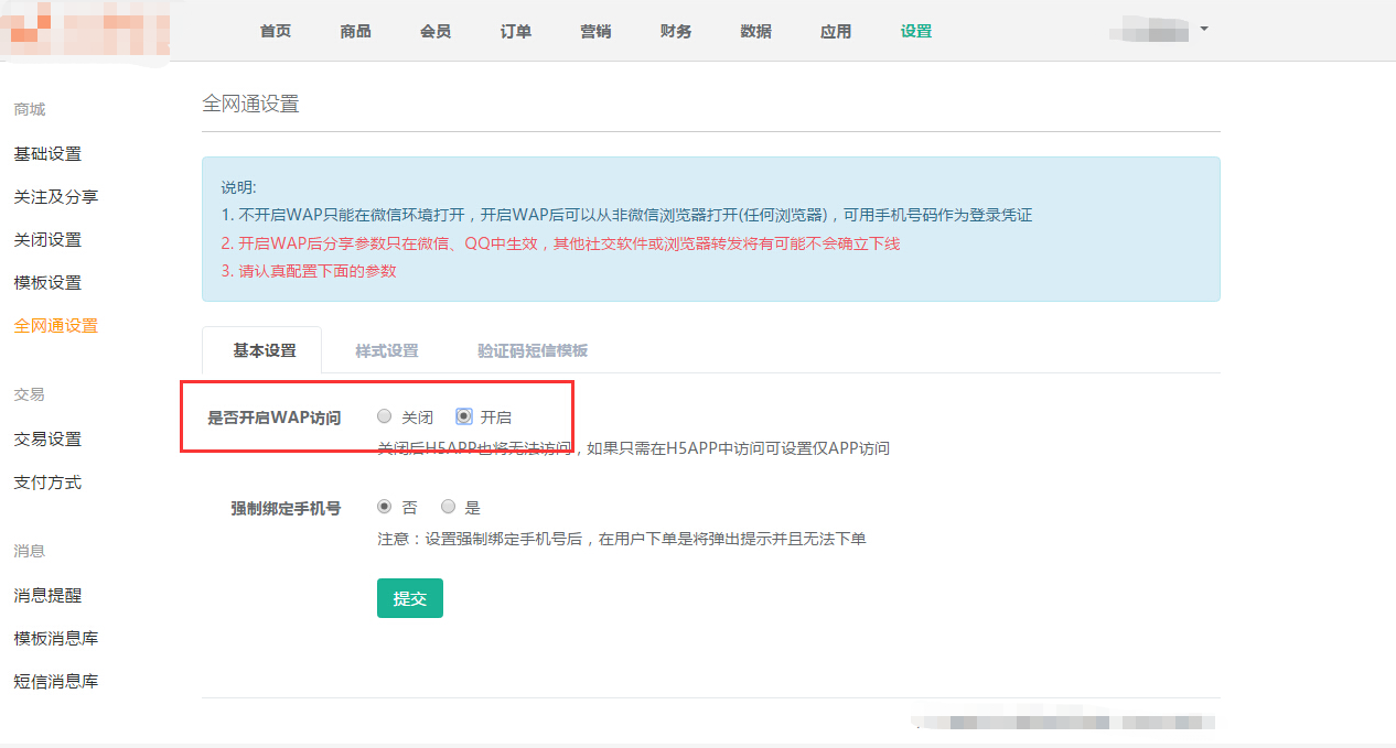 选择强制绑定手机号,则未绑定手机号的会员下单时会提示需绑定手机号才能下单。