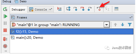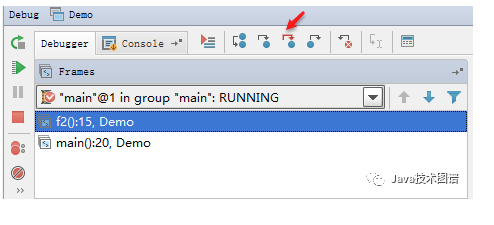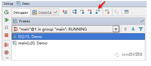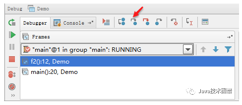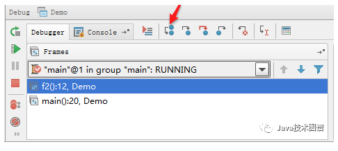 点击该按钮后,你将返回到当前方法的调用处(如上图,程序会回到main()中)重新执行,并且所有上下文变量的值也回到那个时候。只要调用链中还有上级方法,可以跳到其中的任何一个方法。