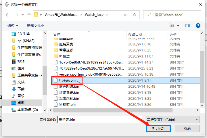 在弹出来的窗口中选择你要**修改的表盘bin文件**