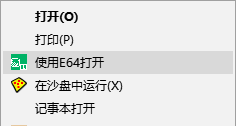 * 需要注意的是E64与其他易语言环境可以共存且互不冲突,E64 打开易源码的方式为 右键菜单->使用E64打开,双击易语言将使用其他易语言环境打开。