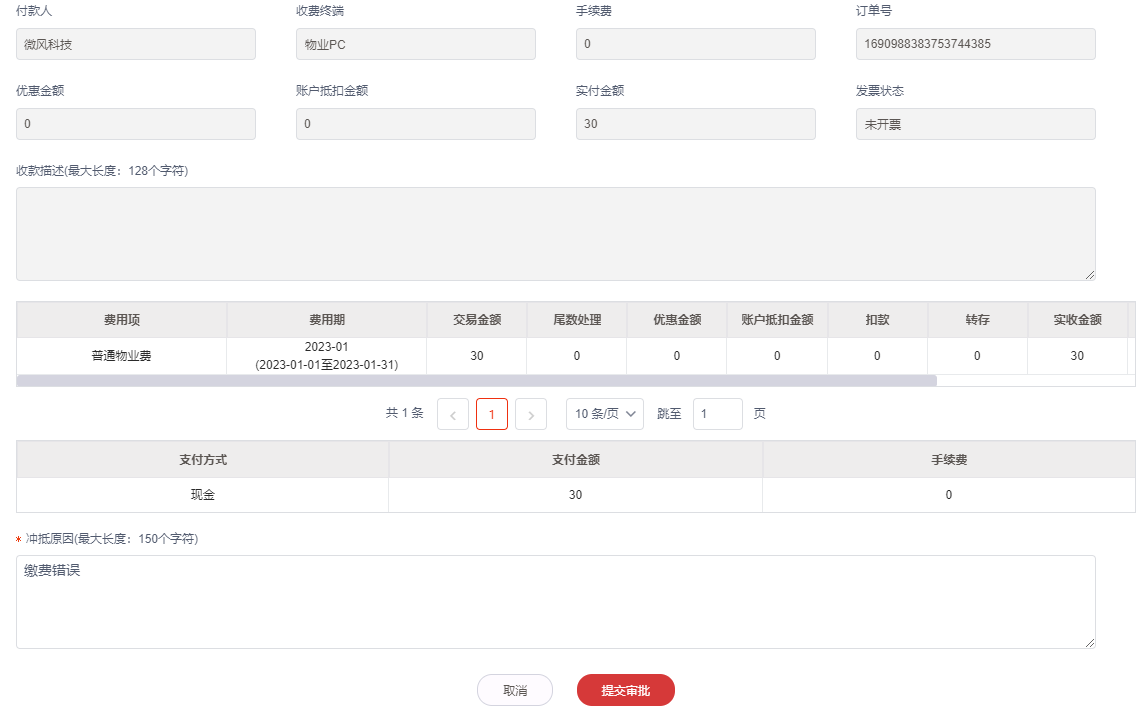 - 合同收费流水