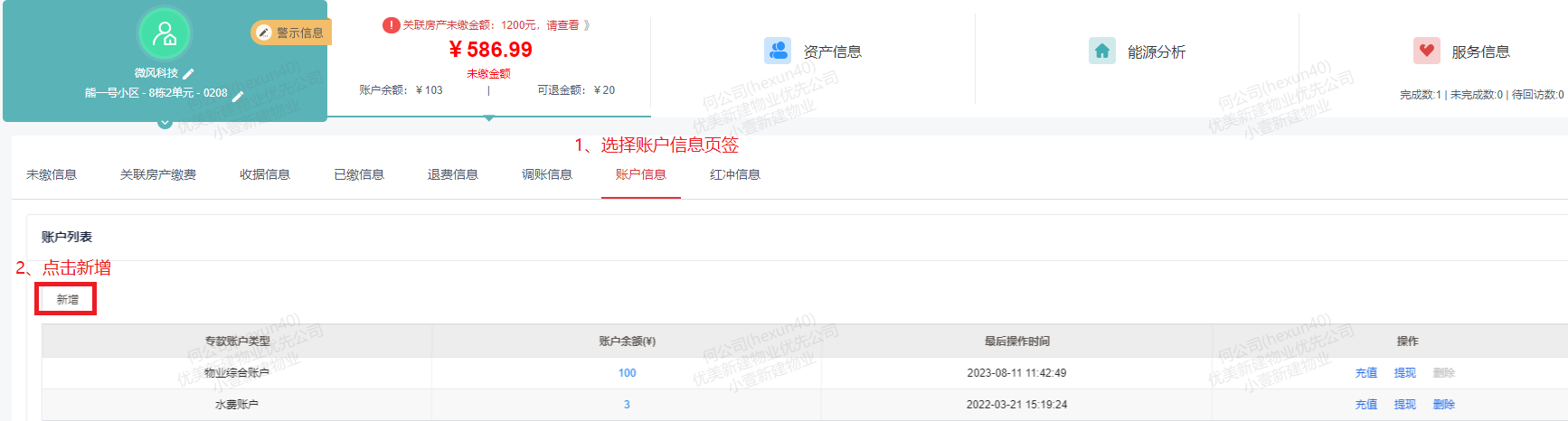 **每一户都会有一个“物业综合账户”**