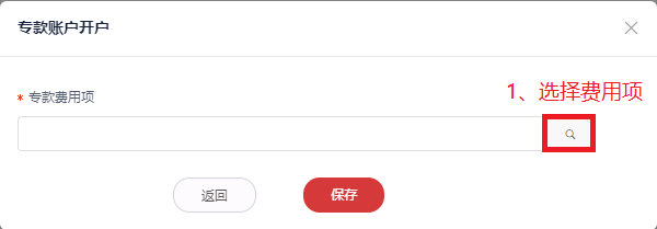 3. 选择需要开设专款账户的费用项,点击确定,并保存开户信息。