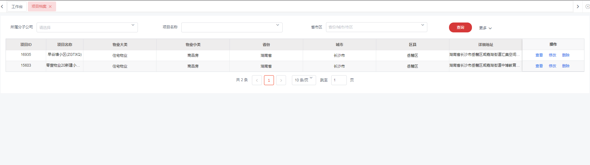 2.项目上的人只能看到自己项目档案,分公司只能看到分公司下所管的项目,公司可以看到所有本物业下所有项目。