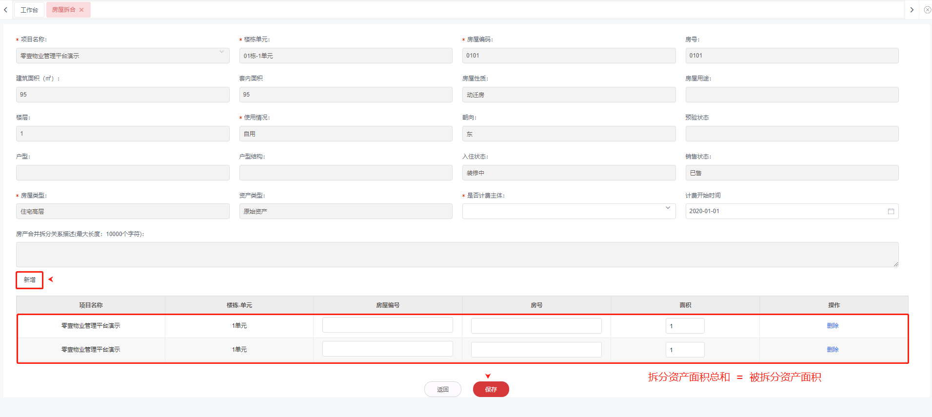 二、业务背景:一个房产下有多个业主或者其他原因,需要对资产进行分开缴费等操作,需对其进行资产拆分处理。