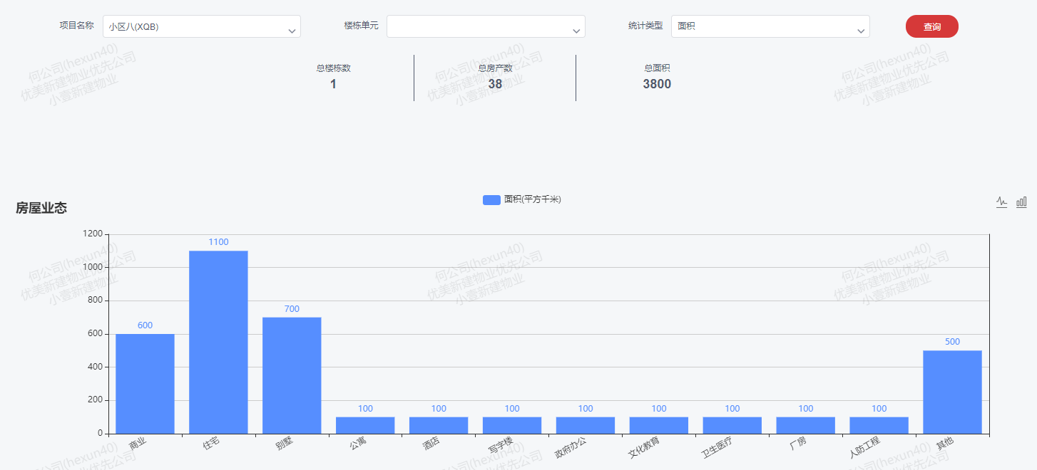 统计项目中,楼栋房产面积数和户数还有各户数的房屋类型、房屋状态、房屋标签、销售状态、使用状态、房屋用途、房屋性质统计