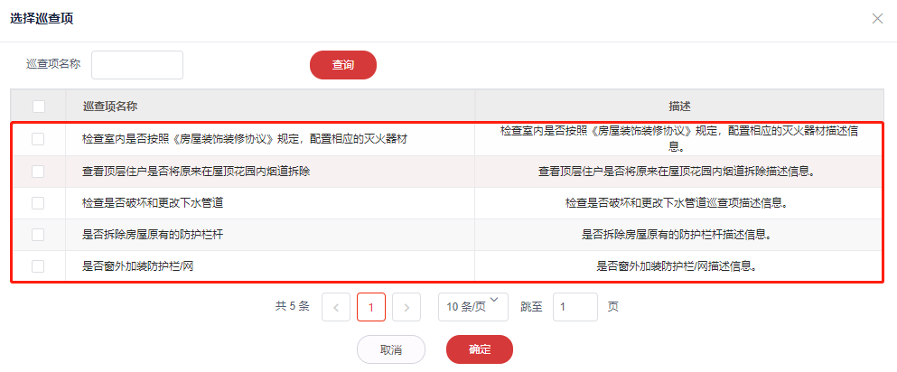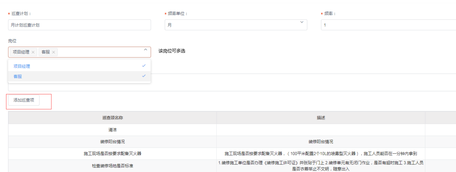 注意:添加巡查项,巡查项页面仅展示有效的巡查项信息。