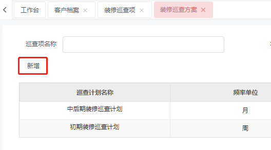 1.点击菜单:**物业管理 > 客户服务 >房产服务> 装修巡查方案**。