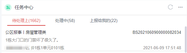 1. 选择 **物业管理 > 客户服务 > 业主服务 > 客服中心**,选择待处理页签 。