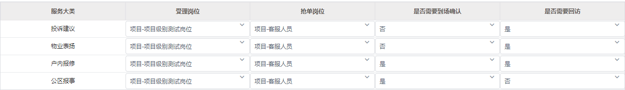 * 在**物业管理 > 客户服务 > 业主服务 > 服务规则配置**菜单,此服务的服务类型设置为需要回访。