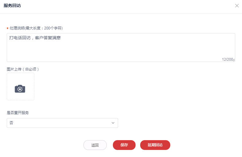 服务处理完成后,如果此服务类型需要回访,那么客服人员可以进行回访。