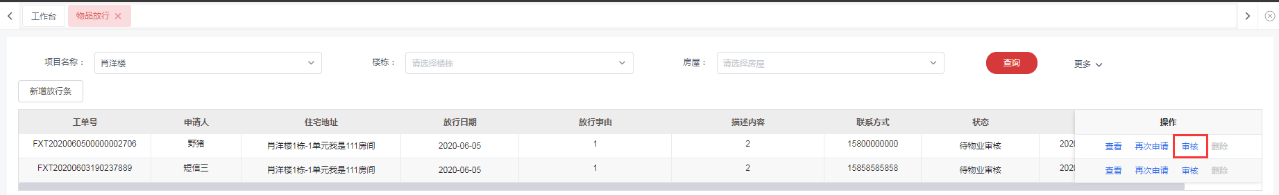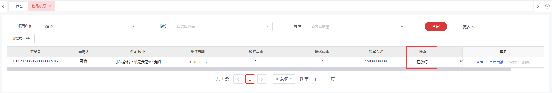 (申请人需要在申请房屋中存在有效的客户数据;申请房屋中存在有效的已认证业主,或者存在没有有效的已认证业主,提交后,放行条状态均为待物业审核)