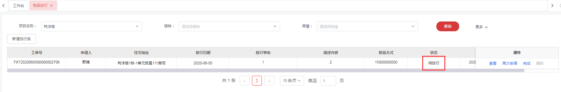 6.在有效的放行日期,申请人进行放行后,点击完成,放行条状态变为已放行