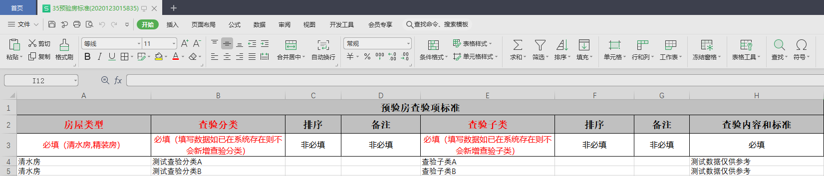 4.填写预验房标准信息(预验房目录以及预验房标准支持同时导入)