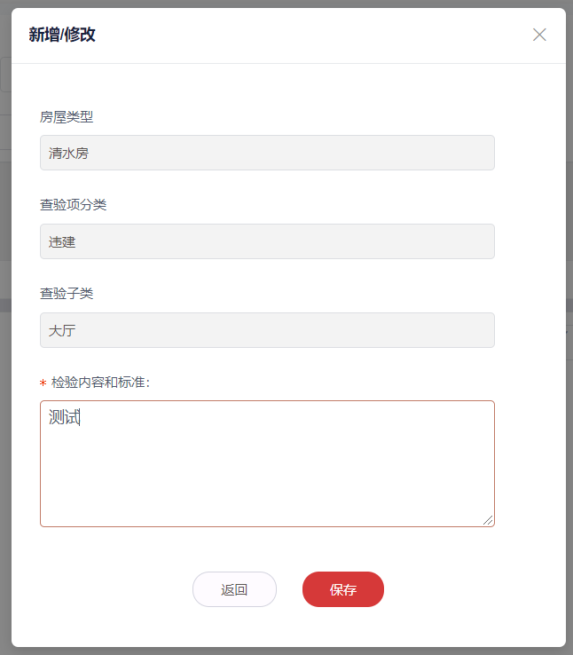 3.填写查验项信息,点击保存按钮