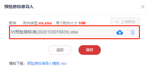 5.上传编辑完成的导入附件,点击保存按钮