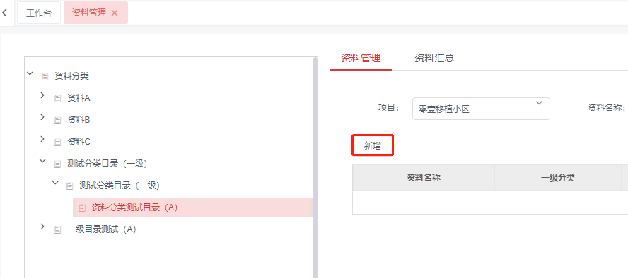 2.选择资料分类目录(三级目录),点击新增按钮