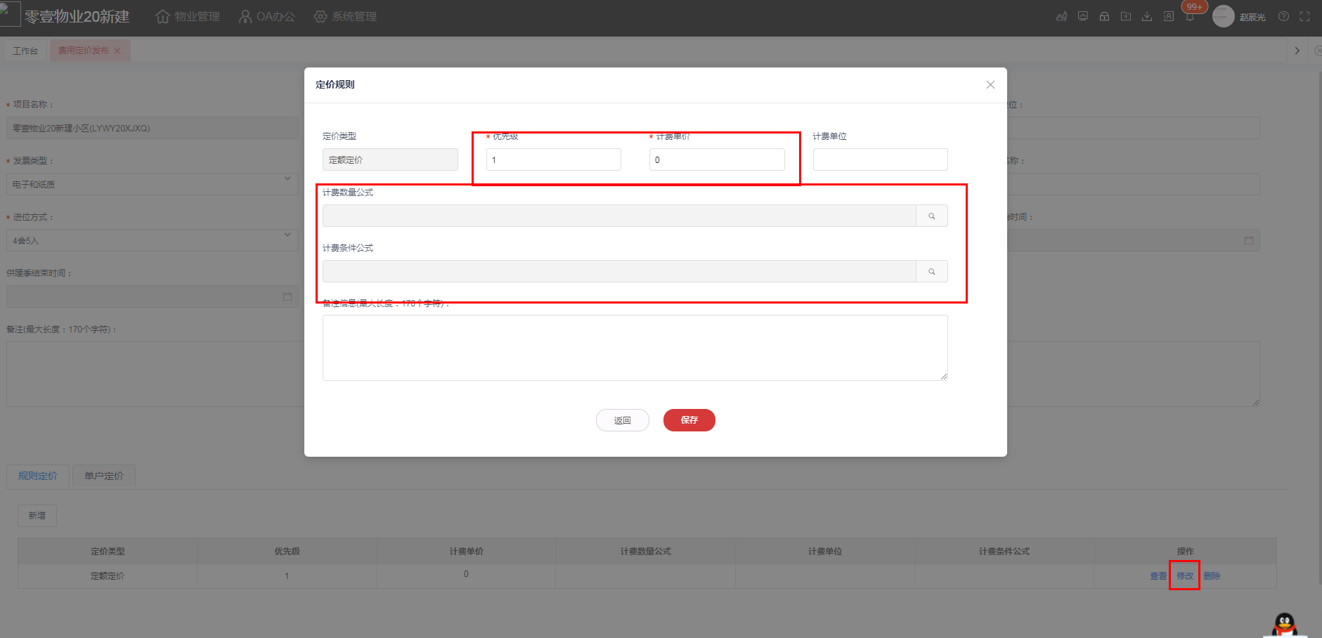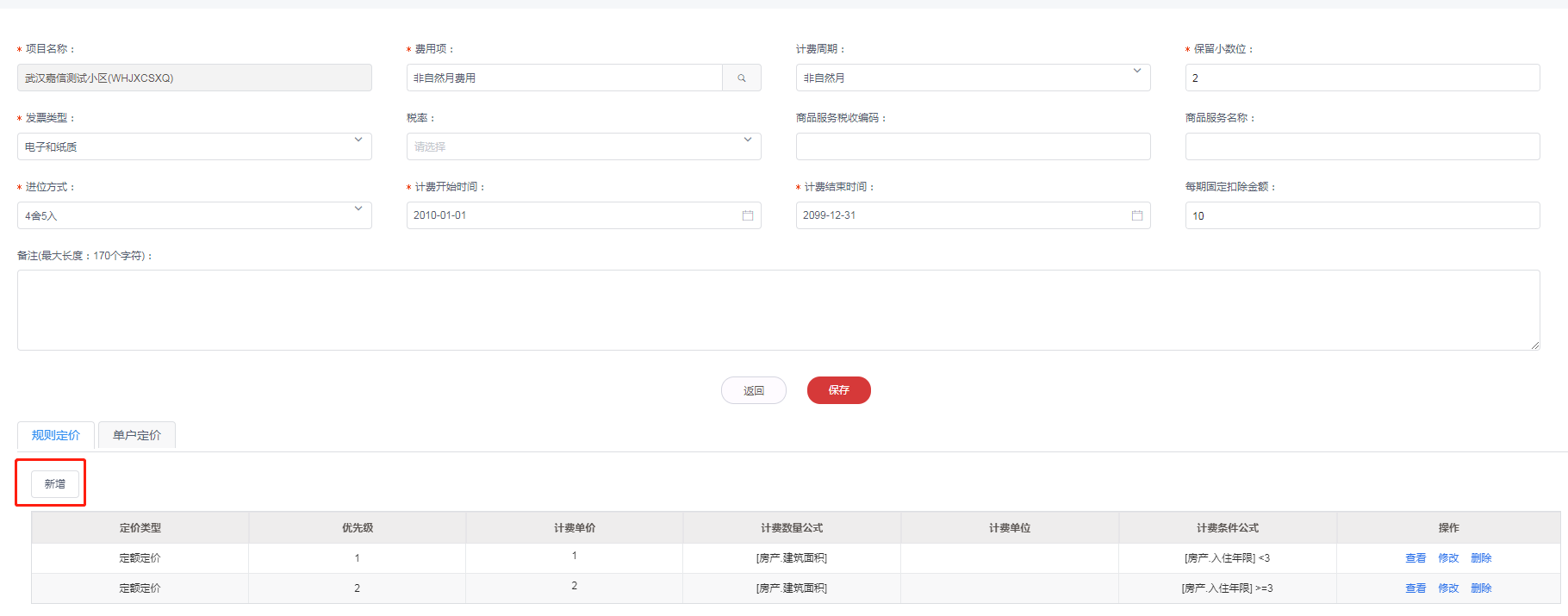 2.输入优先级、计费单价、计费数量公式等,点击保存;