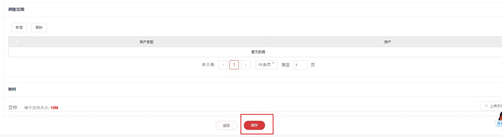 3.填写调账计划基本信息 、点击“新增”按钮添加调账范围