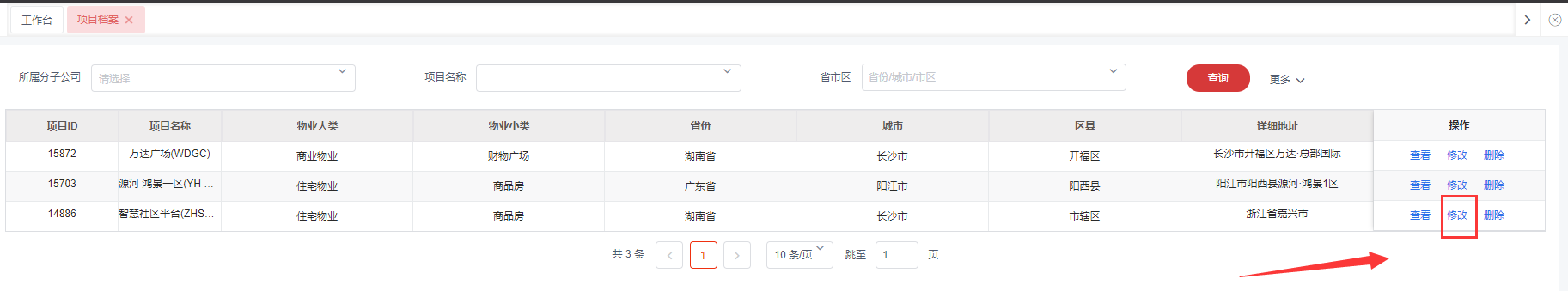 1.点击菜单:**物业管理>档案管理>项目档案**