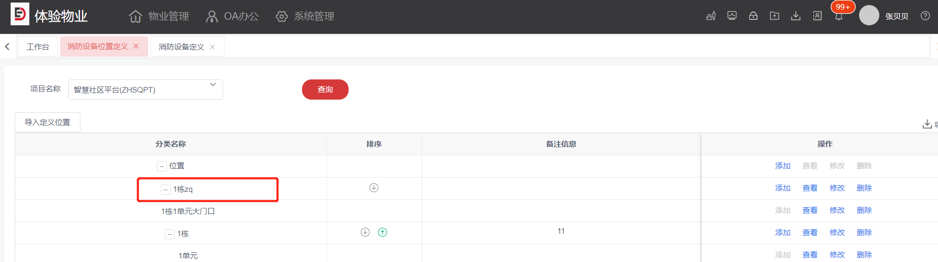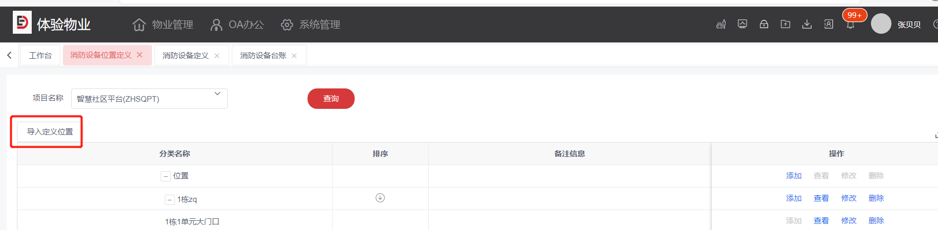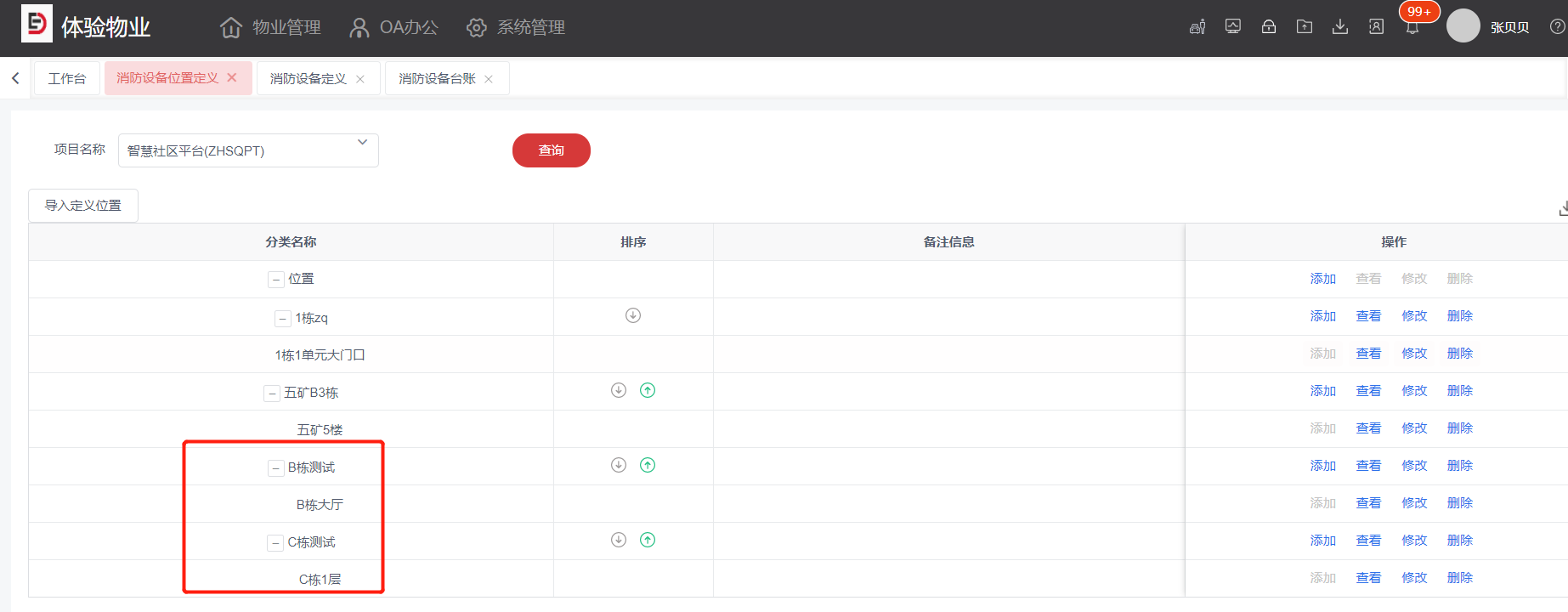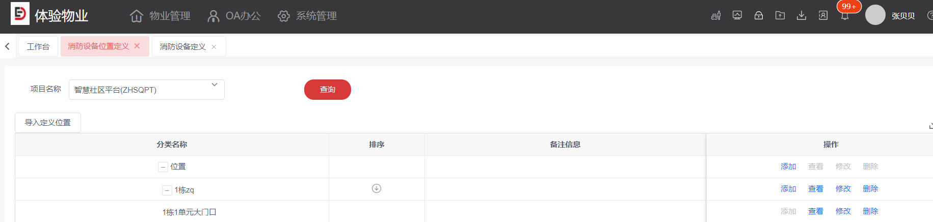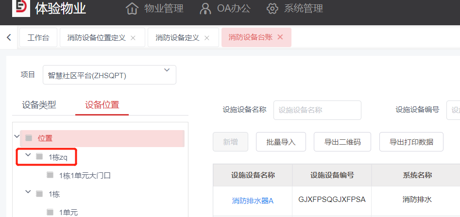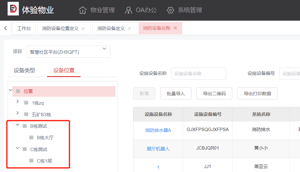 1,消防设备位置目录分为两级:设备位置 > 设备位置分类目录