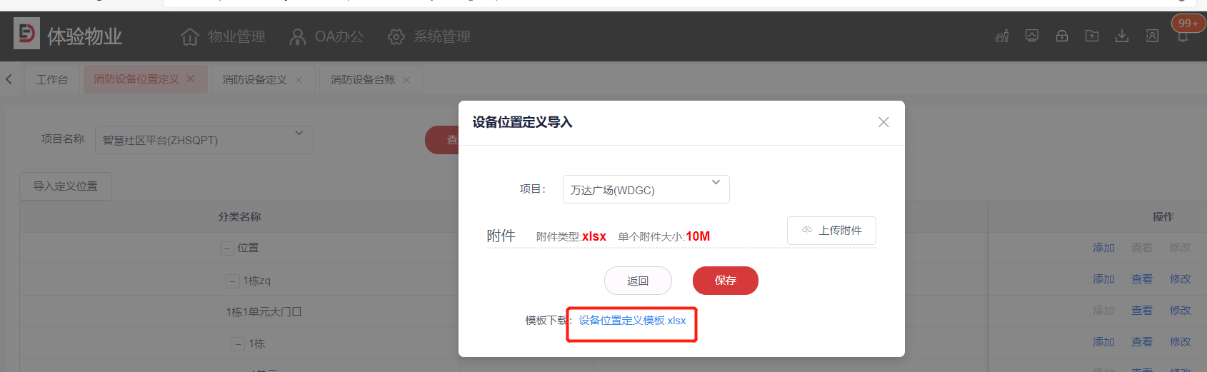 4,导入消防设备定义信息,上传填写好的模板信息,保存