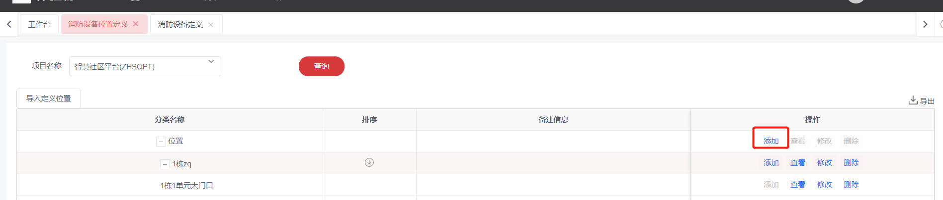 2,手动新增消防设备位置目录,点击消防设备位置目录操作域添加按钮,可新增下级目录