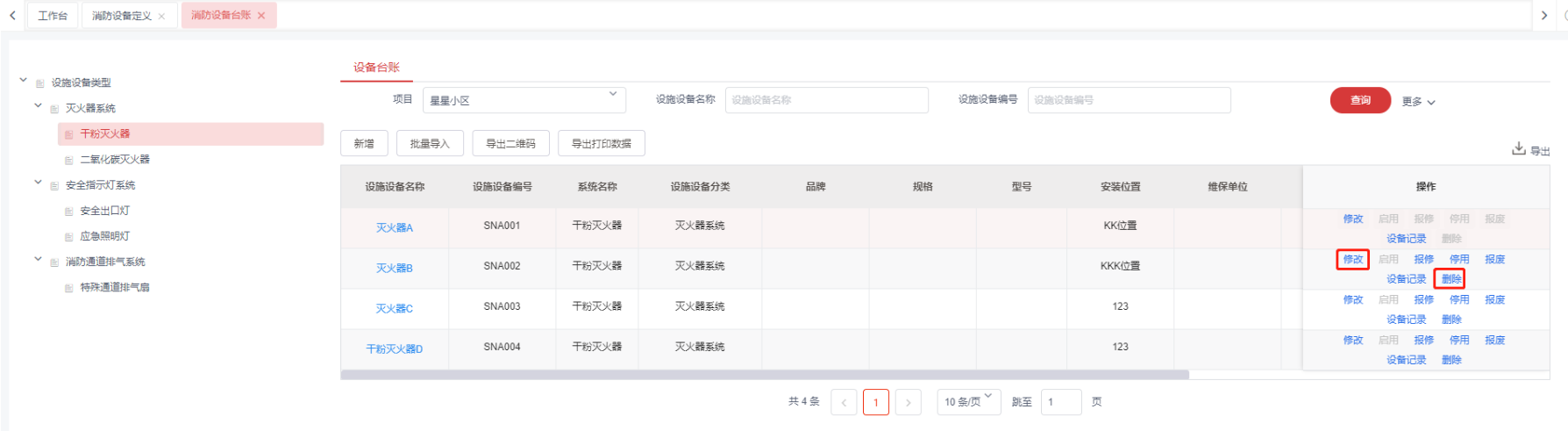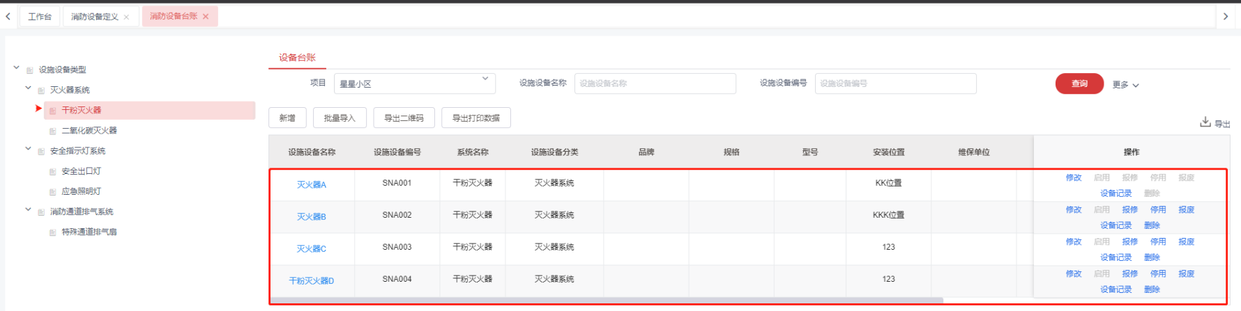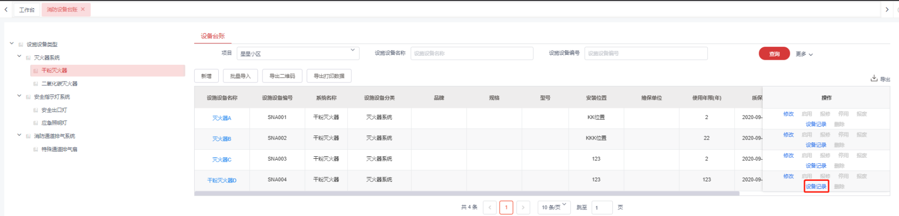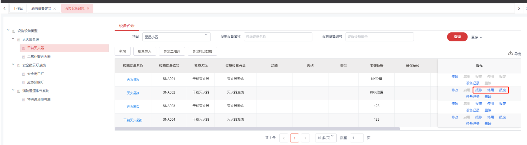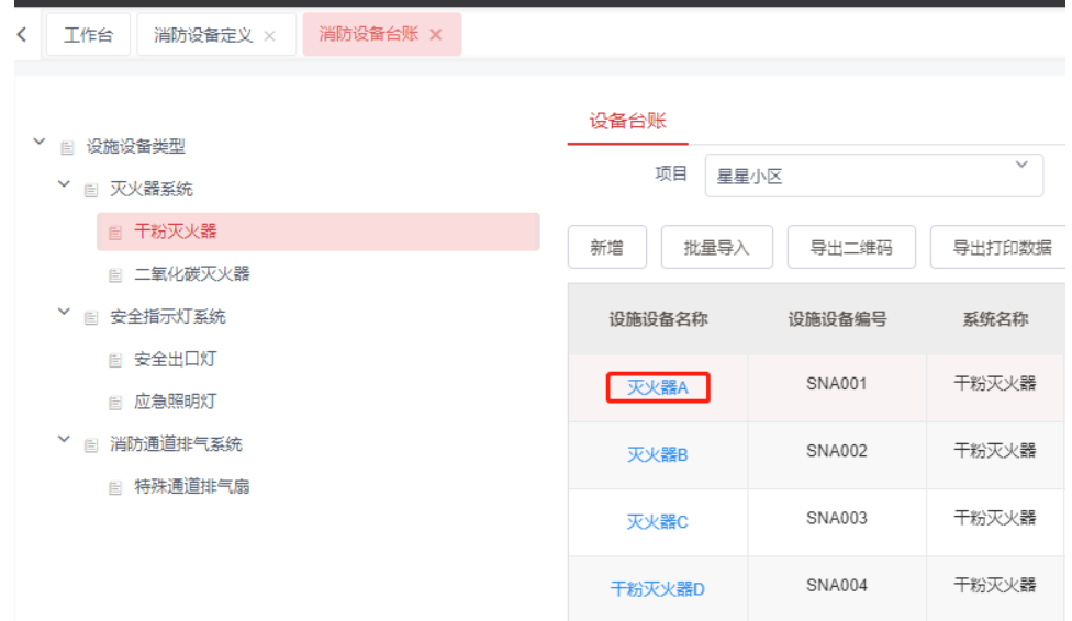 1,消防设备台账信息维护
