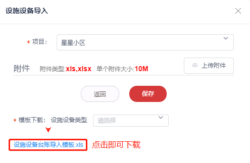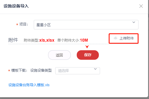 2,下载设备台账导入模板,保存至指定路径