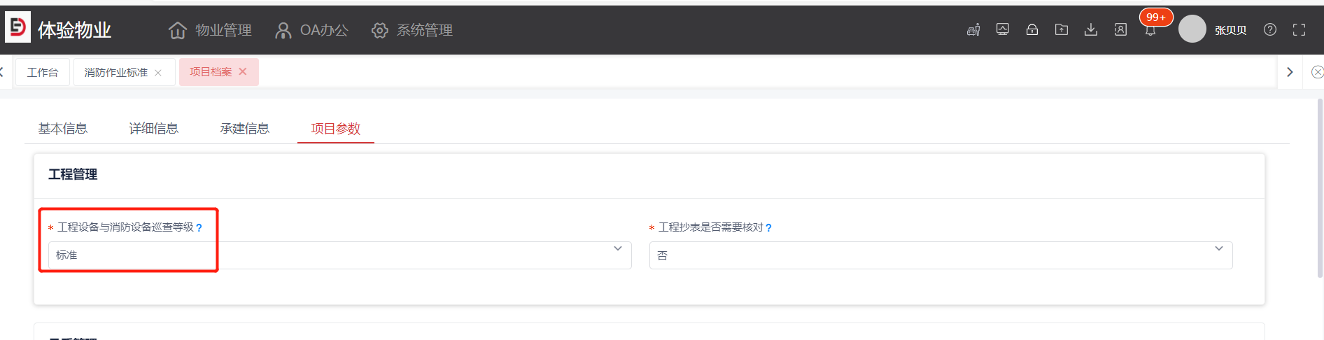 说明:如何查看项目的服务等级:档案管理>项目管理>选择需要查看的项目>点击查看>切换至项目参数页签
