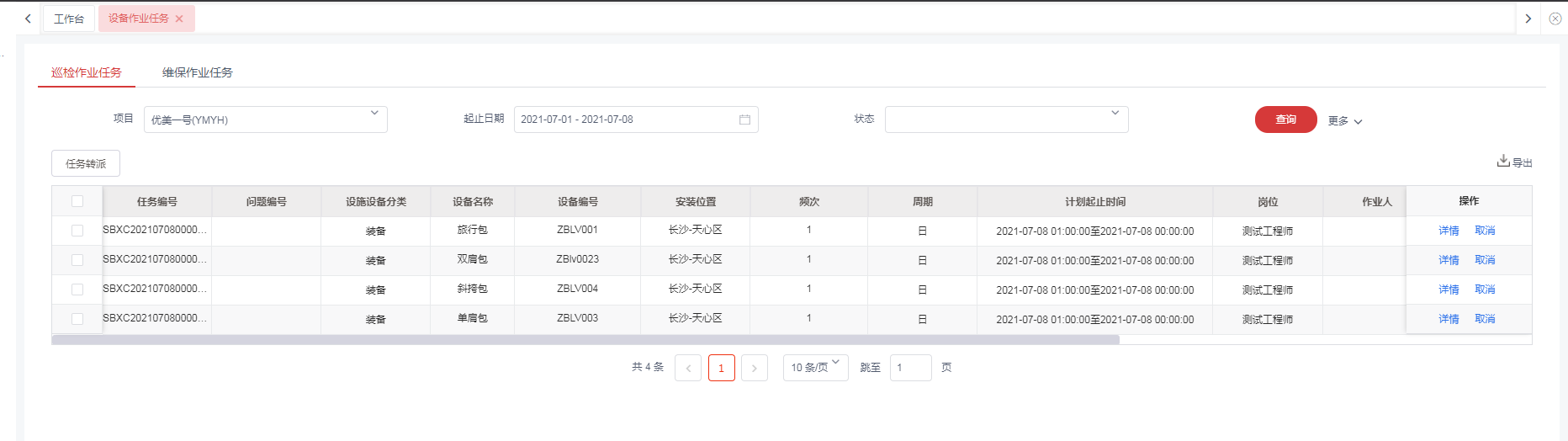 2,可在列表查看后台生成的设施设巡检/维保任务,点击任务可进行处理