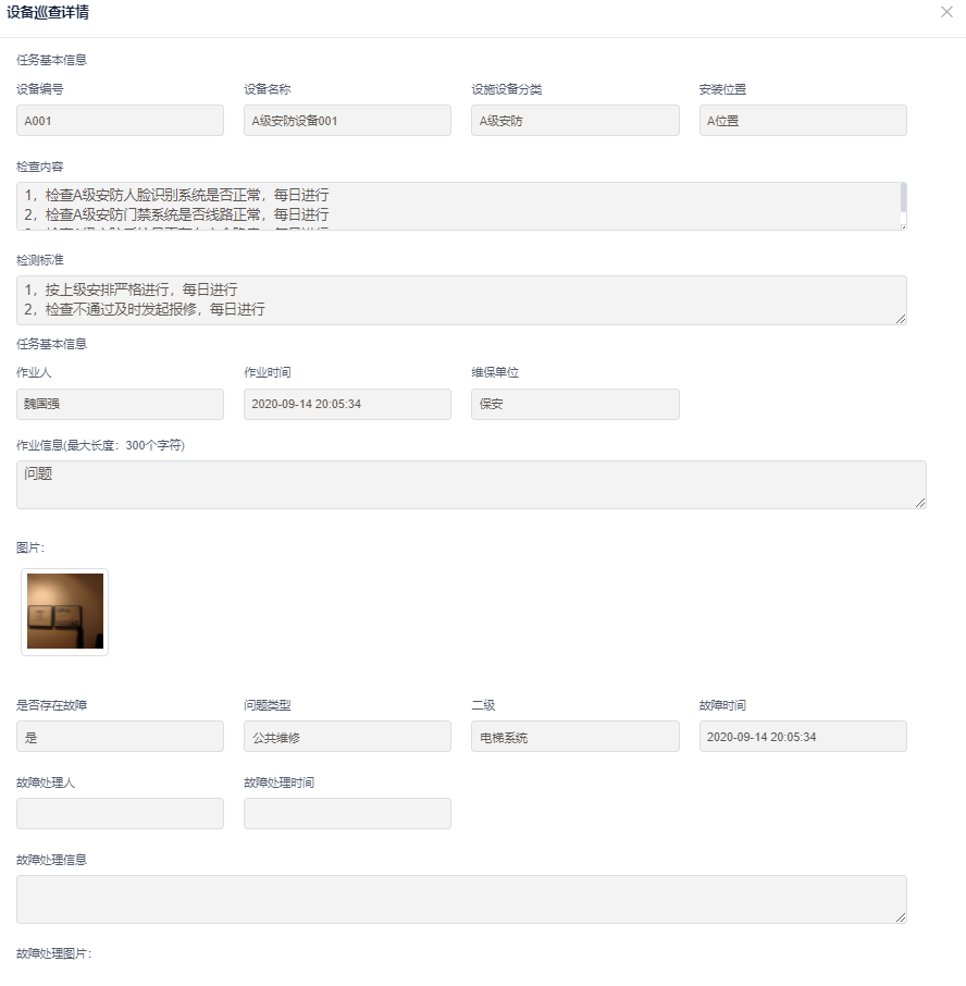 4,任务详情页面可查看作业任务问题记录信息,以及故障处理信息