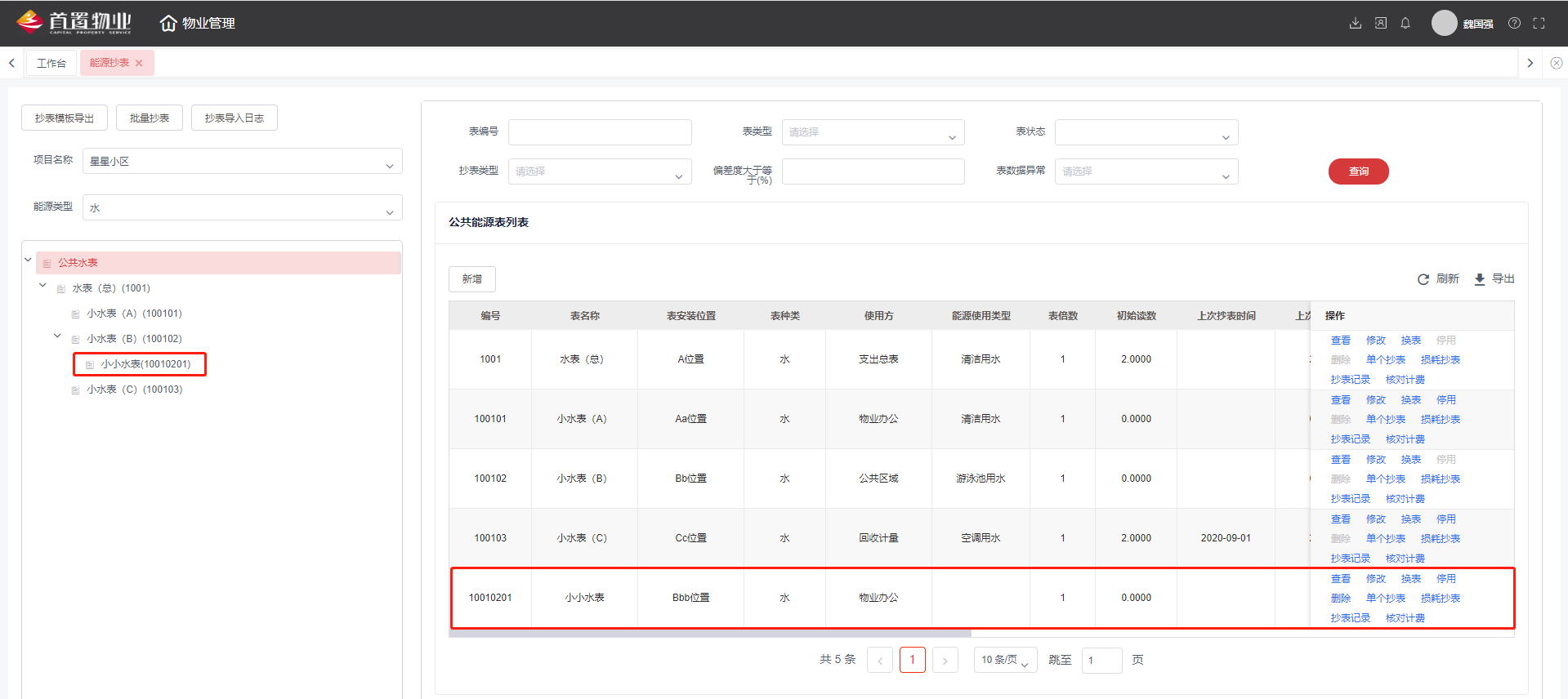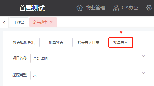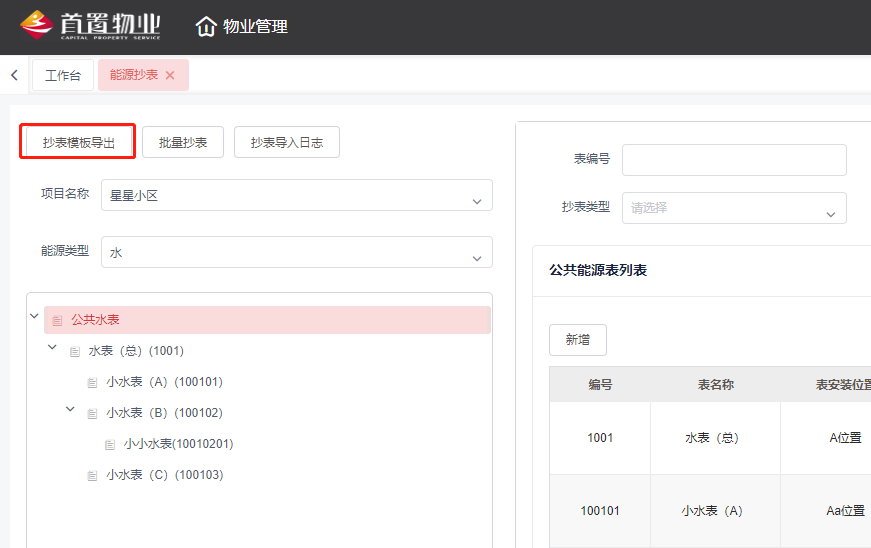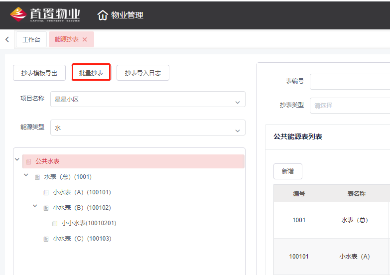 1,点击菜单:**工程管理 > 能耗管理 > 公共抄表**