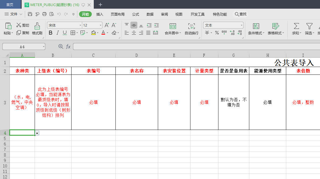 2,在抄表模板中填写对应能源表本次抄表读数,保存模板