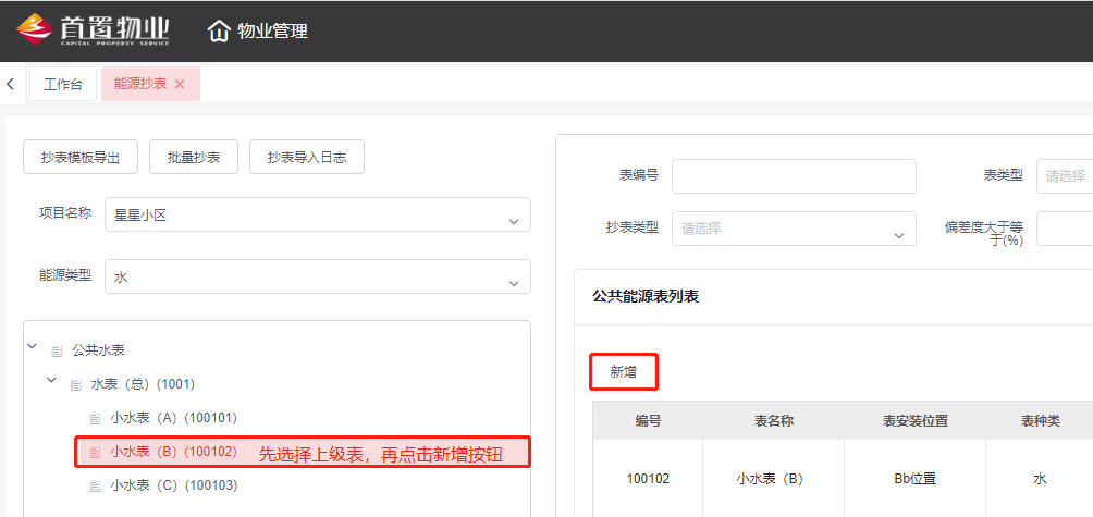 1,进行损耗抄表时,能源表需在本月存在过抄表记录