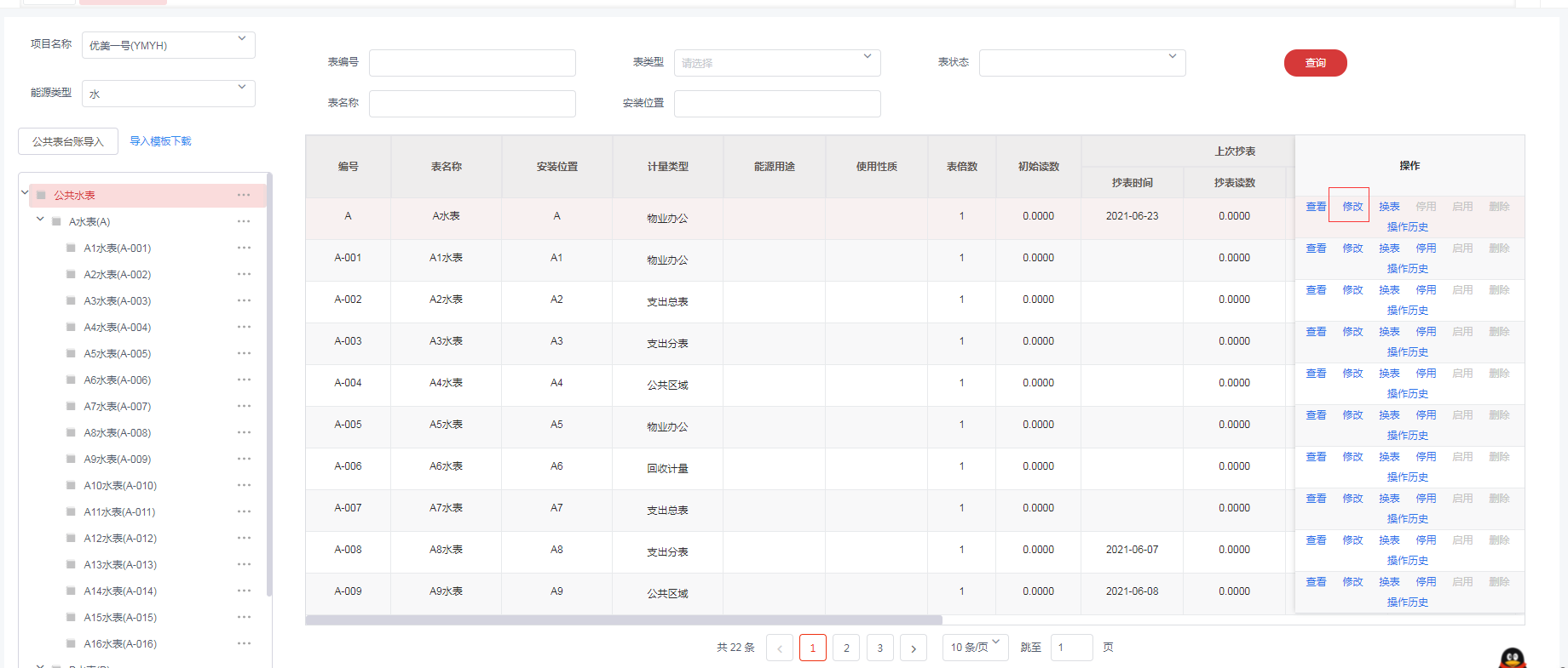 1,选择需要修改的能源表,编辑能源表信息,保存