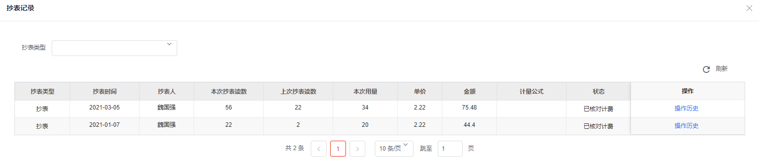 操作人员有 “抄表管理” 菜单操作权限