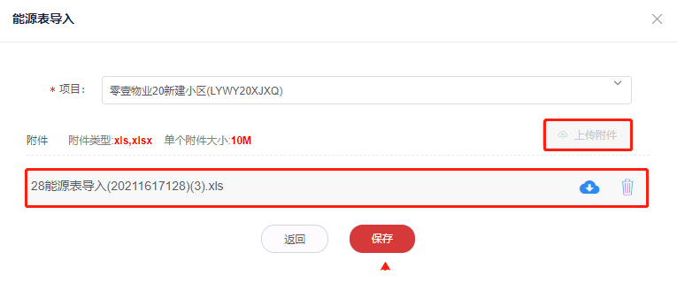 4,上传编辑好的能源表信息附件,保存