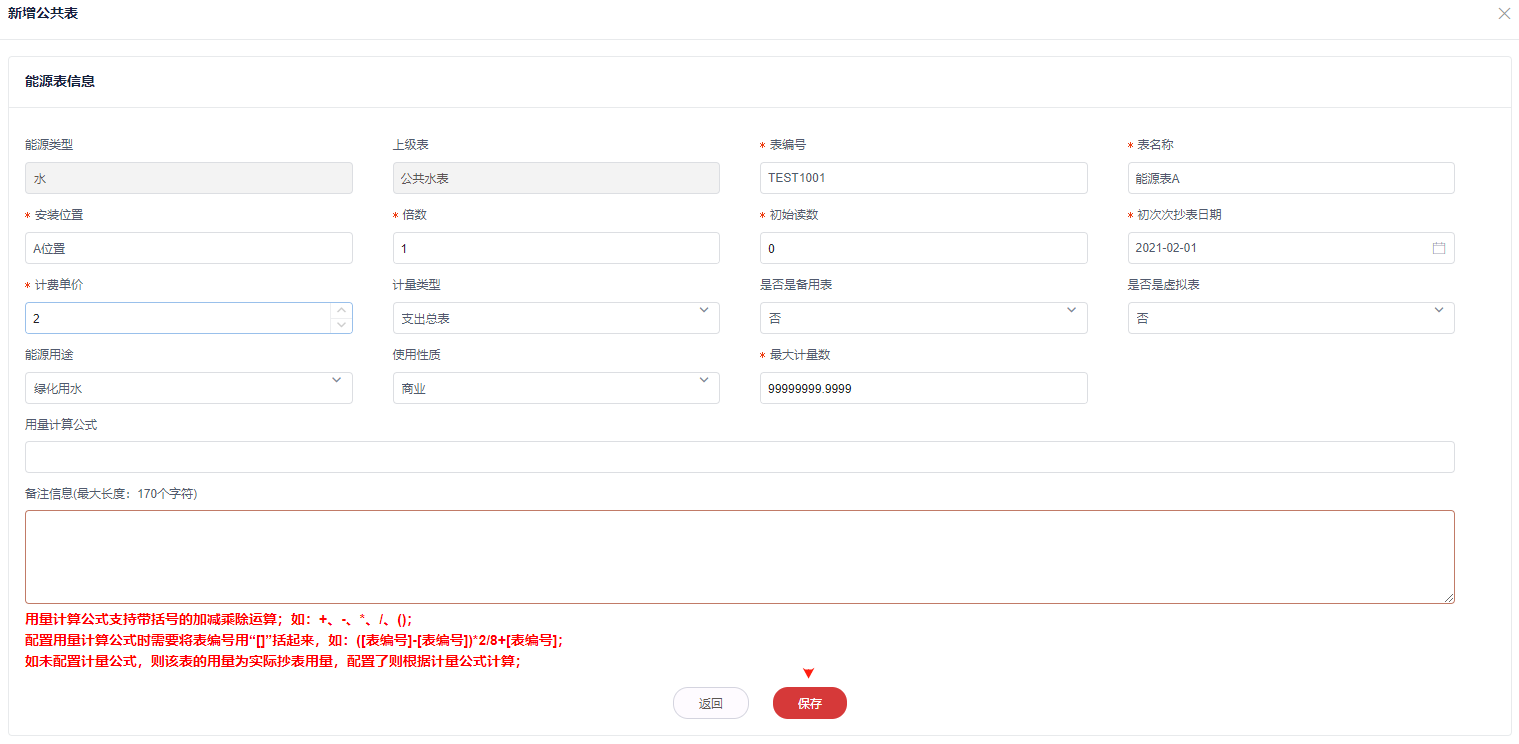 2,填写能源表基本信息,保存