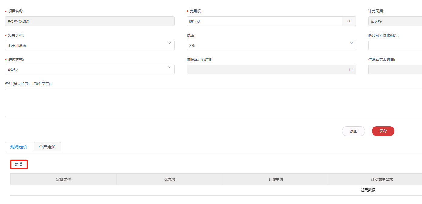 3,保存后点击规则定价下方的新增按钮