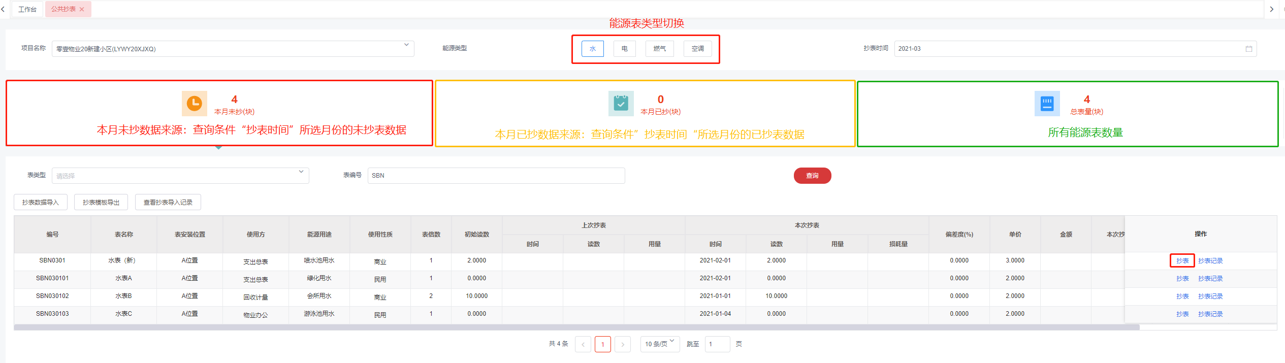 ### **公共抄表界面功能详解**