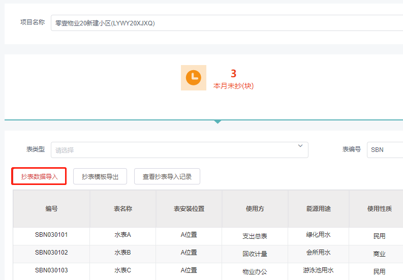 3.点击**抄表数据导入**按钮