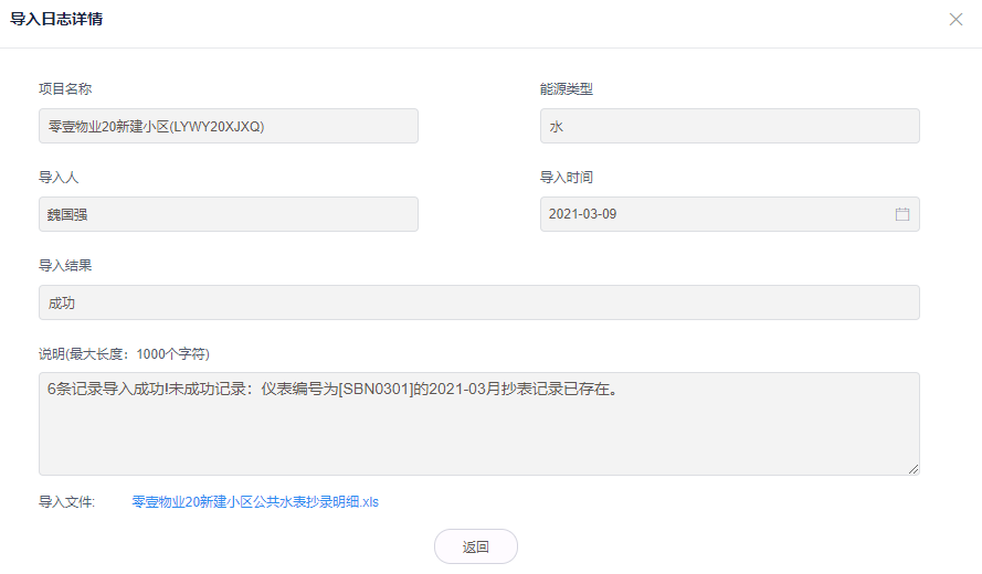 6.执行导入后可在**查看抄表导入记录**中查看导入结果