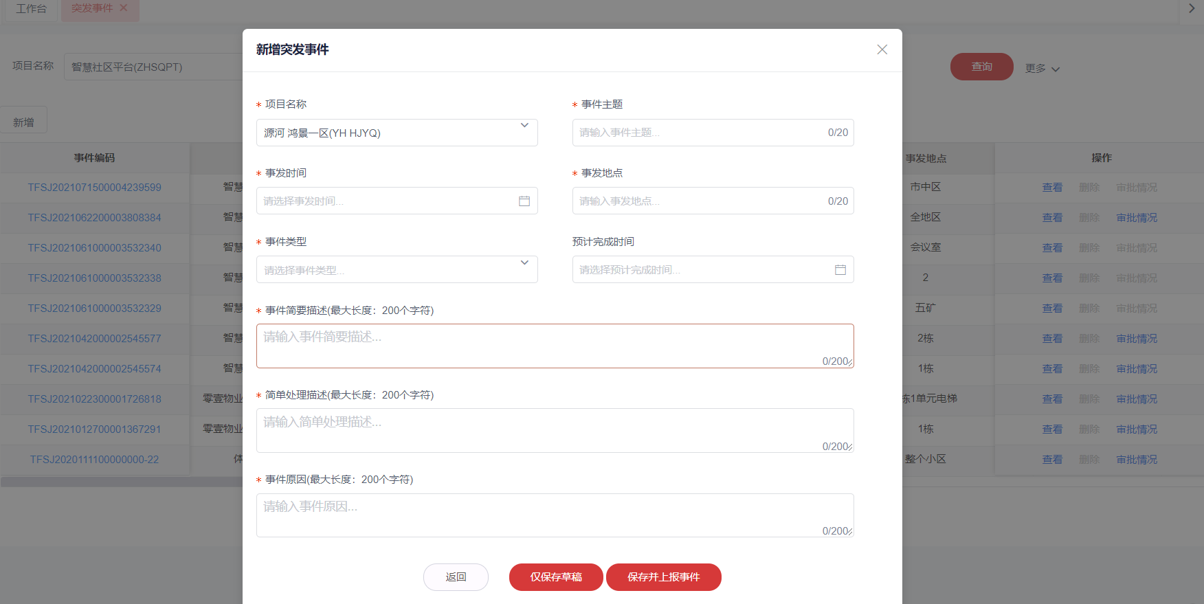 4.草稿状态的事件可删除,已上报的事件不可删除了。
