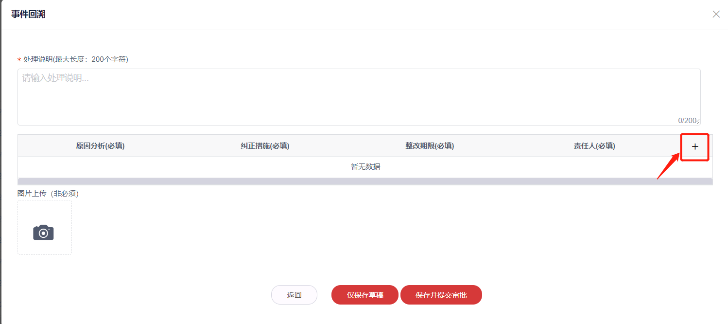 **页面+按钮,是添加原因分析,原因分析可添加多条。**