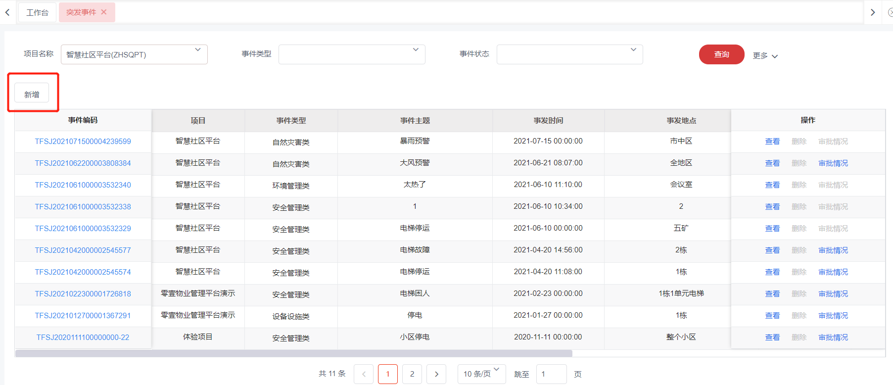1.在突发事件列表页面,点击事件编码或者查看按钮。