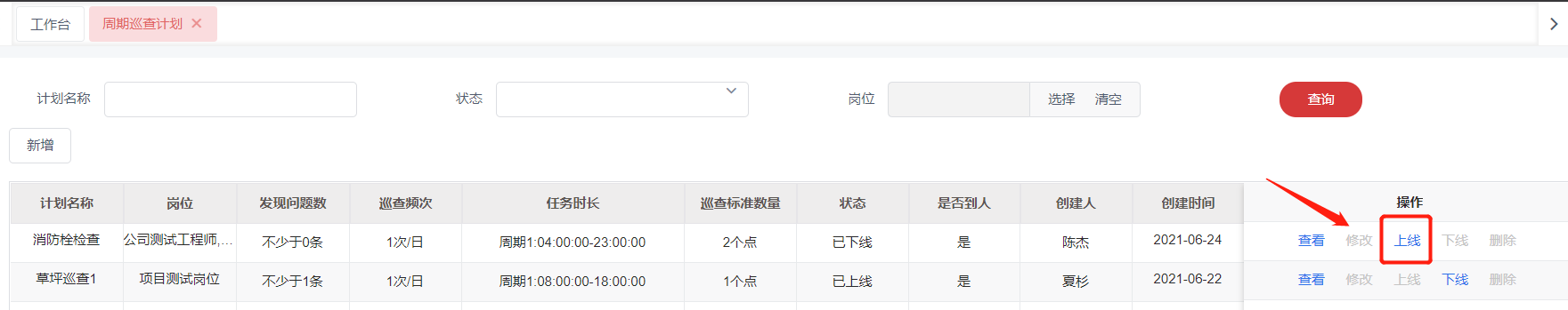 新增的方案,保存后为草稿状态,需要点击**上线**按钮后才能生成任务。